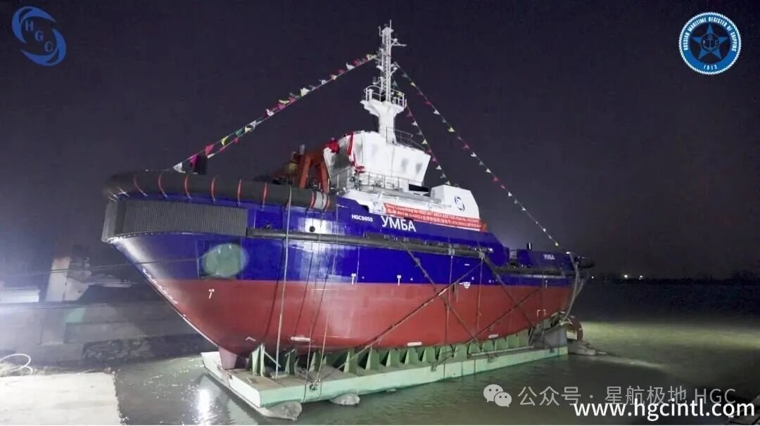 2025.12.10On the morning of December 8, 2025, HGC Shipyard welcomed a pivotal moment in China-Russia cooperation—the grand launching ceremony of the ice-class tugboat HGC9055 (MV UMBA), built by Huigang International. The ceremony was attended by Mr. Lukiantsev, Consul General of the Russian Federation in China; Mr. Dakhnovskiy, Chief Trade Representative of the Russian Federation in China; Mr. Dutkovskii, Assistant to the Chief Trade Representative; the ship's godmother, Ms. Ylia; Mr. Vaniukov from RS Classification Society; Mr. Cao from RS Classification Society; the management and design teams of Huigang International (HGC); and Chinese partners. Amid the auspicious atmosphere of a traditional dragon dance performance, the hull of HGC9055 rested quietly on the slipway, ready to embark on its magnificent journey from the banks of the Yangtze River to the Arctic routes.